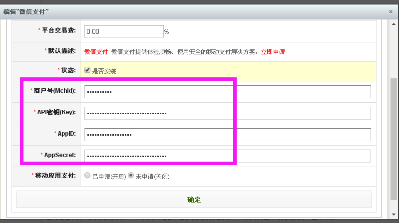 商户号(Mchid),API密钥(Key),AppID, AppSecret