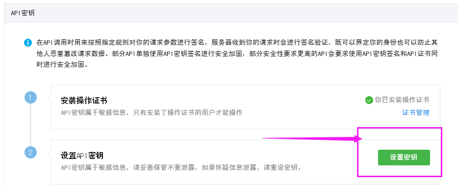 1.API密钥(Key):就是在商户平台您自己设置的32位密码